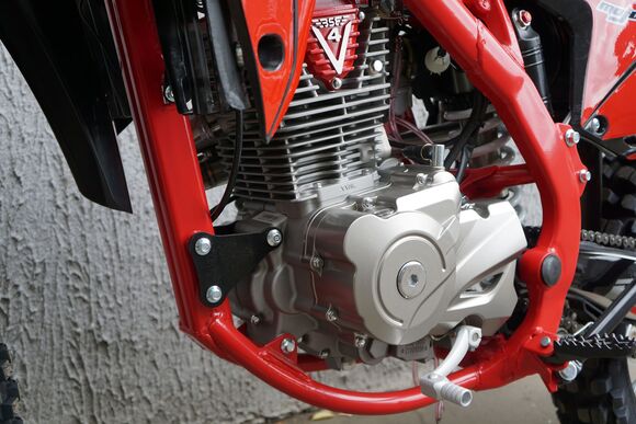 Комплектация На мотоцикле установлены: усиленные легкосплавные колёсные диски MOJO, усиленная цепь, датчик моточасов, усиленные траверсы, складные СNC рычаги тормоза и сцепления, защита коллектора. Мощная гидравлическая тормозная система HSК Racing остановит байк в любых условиях.