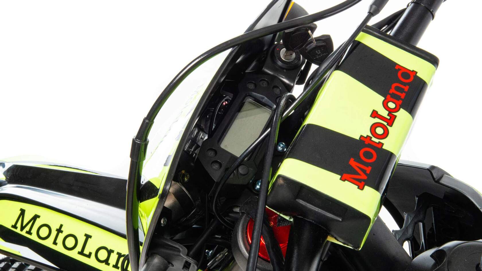 Мотоцикл Motoland X2 250 предназначен для езды по бездорожью и соревнований по мотокроссу. Имеет хорошую проходимость, прекрасно ведёт себя на песке и грунте, подходит для асфальтовых дорог. Оснащён двигателем 172FMM-3A мощностью 21 л.с. ,и карбюратором NIBBI PE 30.разгоняется до 120 км/ч. Выхлопная система из нерж. стали с резонатором "Рowerbomb", который увеличивает мощность на низких оборотах. Это одна из лучших моделей кроссовых мотоциклов по соотношению цены и качества.Подходит для новичков и любителей мотокросса. Идеален для бездорожья, его кроссовые шины (110-90) и (80-100) просто созданы для езды по мягкому и среднему грунту. Телескопическая вилка перевернутого типа позволяет легко преодолевать ямы, ухабы и другие неровности. Задняя подвеска маятниковая, с моноамортизатором.Мотоцикл доступен в ярком цвете "лайм" и отлично смотрится. Его дерзкий дизайн подчёркивает неуступчивый спортивный характер байка.Motoland X2 250 весит 120 кг, выдерживает нагрузку до 150 кг. Рама полудуплексная стальная. Прочный облицовочный пластик не ломается при сгибании, защищает от грязи. Надёжно закрепленный руль имеет переменное сечение: 28 мм в месте крепления и 22 мм на концах под грипсами, а также короткоходную ручку газа. Колёса на алюминиевых ободах, оснащены усиленными спицами и антибуксаторами, размер заднего колеса — 18 дюймов, переднего — 21 дюйм, а так же усиленными полыми осями.Для запуска двигателя можно использовать электростартёр или кикстартёр. Система зажигания электронная (CDI). Механическая трансмиссия содержит 5 передач. Отличный запас хода: объём топливного бака — 6 л, расход топлива — 5 л на 100 км. Передняя фара светодиодная, обновленного дизайна, легко включается поворотом замка зажигания и позволяет ездить в сумерках и темноте.Так же мотоцикл оснащён надёжными передними двухпоршневым тормозным суппортом и задними тормозами с однопоршневым тормозным суппортом, задним багажником, приборной панелью, поворотниками и зеркалами. Удлиненное сиденье, с антискользящим покрытием. Тормозные диски крепятся на 4 болтах, диаметр заднего тормозного диска 215 мм, переднего — 235 мм. Тормозной шланг армированный.