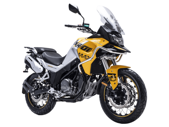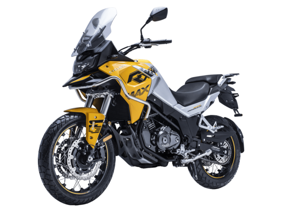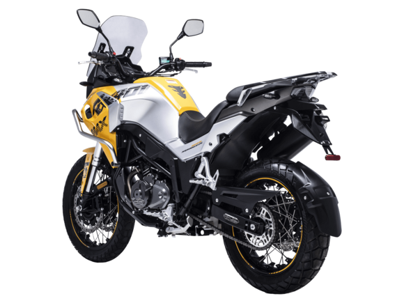 Мотоцикл CYCLONE RX401 (SR400GY-2D) – туристический эндуро, готовый бросить вызов любым дорогам и расстояниям. За рулём этого мотоцикла для вас не будет невозможных маршрутов. Его агрессивный дизайн всецело соответствует традициям жанра данного класса мототехники.Рядный двухцилиндровый четырёхтактный двигатель объёмом 401 см3 выдаёт 43 л.с. на 9500 об/мин. Максимальный крутящий момент достигается на 8000 об/мин и составляет 37 Н·м. Инжекторный впрыск топлива с блоком управления BOSCH увеличивает топливную экономичность, а также позволяет добиться высокой приёмистости и неприхотливости агрегата. Жидкостная система охлаждения не допустит перегрева двигателя даже при самом агрессивном вождении. На мотоцикл 6-ступенчатая механическая коробка передач.Максимальная скорость мотоцикла составляет 139 км/ч.RX401 оснащён спицованными алюминиевыми колёсами диаметром 17 и 19 дюймов. Колёса обуты в бескамерные покрышки от фирмы CST. С неровностями дороги эффективно справляются телескопическая вилка перевёрнутого типа спереди и маятник с моноамортизатором сзади. Ход передней подвески составляет 130 мм, задней – 55 мм. Оба компонента подвески являются регулируемыми. Эффективное и безопасное замедление с любых скоростей обеспечивают гидравлические дисковые тормоза с двухканальной системой ABS спереди и сзади.Клиренс мотоцикла составляет 185 мм. Объём топливного бака – 20 л. Снаряжённая масса – 215 кг.Мотоцикл отличает хорошо продуманная компоновка с высоко расположенным радиатором. На данной модели штатно установлены дуги безопасности, защита картера и двигателя, а также багажник с креплениями для боковых кофров. Кроме того, мотоцикл снабжён центральной подножкой для лёгкого обслуживания цепи, колес и вилки.Бортовой компьютер оборудован цветным дисплеем привлекательного дизайна со специальным защитным козырьком, спасающим от брызг и бликов. Из других приятных мелочей в допоборудовании мотоцикла стоит выделить 12-вольтовую розетку, подсветку пультов и USB-порт.Мотоцикл сочетает в себе отличные технические характеристики, комфорт и надёжность, что позволяет вам ощутить настоящую свободу на любой дороге с любым покрытием.