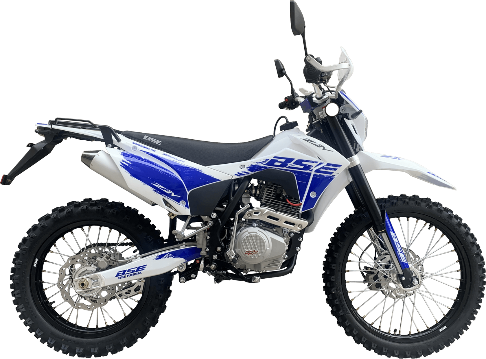 Кроссовый мотоцикл BSE Z3 Y 21/18 дает возможность беспрепятственно покорять бездорожье и комфортно передвигаться в городских условиях. Это модель двойного назначения, она относится к среднеразмерной линейке и имеет ПТС для свободного передвижения по дорогам общественного назначения.Движущую силу, равную 21 л.с., производит мощный 250-кубовый двигатель с воздушным охлаждением. Слаженную работу этого четырехтактного агрегата обеспечивает производительный карбюратор PE-30 от Nibbi, а эффективность – механическая 5-ступенчатая КПП с многодисковым масляным сцеплением.Основу конструкции составляет жесткая стальная рама, оснащенная литыми усилителями. Регулируемая подвеска и гидравлическая тормозная система HSК Racing улучшают управляемость байка и безопасность движения. Высокую проходимость гарантирует наличие большого клиренса в 330 мм и внедорожной резины с агрессивным протектором