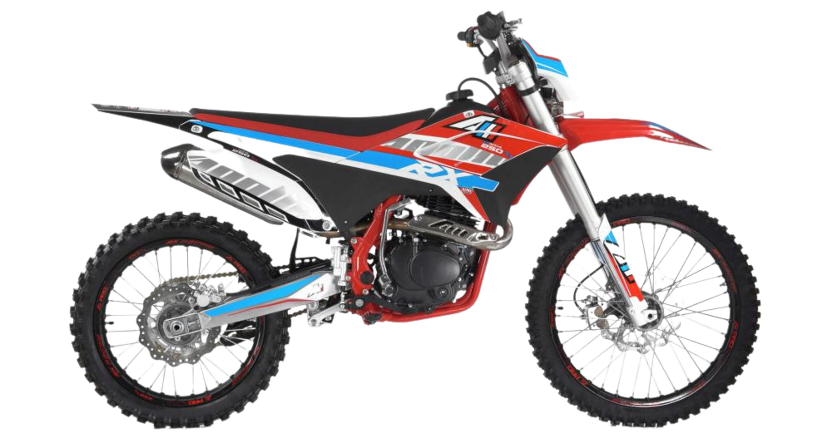 APPOLO RX 250 - это надежный кроссовый мотоцикл с мотором 172 FMM-3А (мощностью 21 лс), оснащенный с карбюратором NIBBI PE30. Имеет агрессивный внешний вид. Задняя линяя прямая завышенная, что придает динамику и ритм. Благодаря передней регулируемой длинноходной подвеске 830 мм, данный мотоцикл имеет хорошую управляемость и маневренность во время движения. Регулируемая задняя подвеска с прогрессией, отлично отрабатывает неровности дороги. APPOLO RX 250 прост в управлении и неприхотлив в обслуживании, подходит мотолюбителям любого возраста и опыта вождения