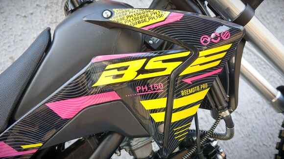 Питбайк BSE PH 150 19/16 AK47 Red (015). Основа PH150 - рама из хромомолибденовой стали повышенной жесткости с литыми усилителями - фирменный знак качества завода BOSUER! Cиловая установка питбайка - надежный и тяговитый 4-тактным двигателем YX объёмом 150 см3 с воздушным охлаждением. Максимальная мощность – внушительные 15 лс. Питает мотор карбюратор MIKUNI VM22. Питбайк оснащен 4-ступенчатой механической трансмиссией. Запуск мотора осуществляется при помощи электростартера или кик-стартера. Подвески с большими ходами: передняя - телескопическая вилка перевёрнуто типа, задняя- моноамортизатор. LED фара головного света, "злая" резина, vощная тормозная система HSK Racing, японские колесные подшипники NTN, защита мотора, руль ProTaper - питбайк полностью укомплектован всем необходимым для покатушек и гонок.PH150 – профессиональный выбор самого продвинутого "питбайкера".