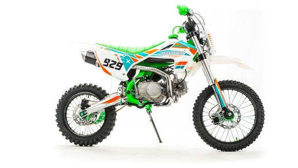 Питбайк Motoland TCX125 14/12 идеален для поездок по грунтовым дорогам и бездорожью. Хорошо чувствует себя на мягком и среднем грунте, разгоняется до 90 км/ч. Оснащён спортивными траверсами, весит всего 70 кг.Питбайк прост в управлении и не требует специального ухода, подойдёт как новичкам, так и любителям мотокросса.Питбайка отличный узнаваемый дизайн. Конструкция подчёркивает неуступчивый спортивный характер, который не остановится ни перед одним препятствием.Комбинированный прочный пластик не ломается при сгибании.Передняя подвеска — телескопическая вилка перевёрнутого типа (с регулировкой по давлению воздуха), которая отлично подходит для преодоления ям, и других неровностей плохих дорог или их отсутствия. Задняя подвеска маятниковая с моноамортизатором.Мотоцикл оснащён одноцилиндровым четырёхтактным двигателем с воздушным охлаждением. Надёжный мотор 152FMI мощностью 8 л. с. и объемом 125 см³ , установленный на усиленной стальной раме, коробка передач автоматическая, четырёхступенчатая