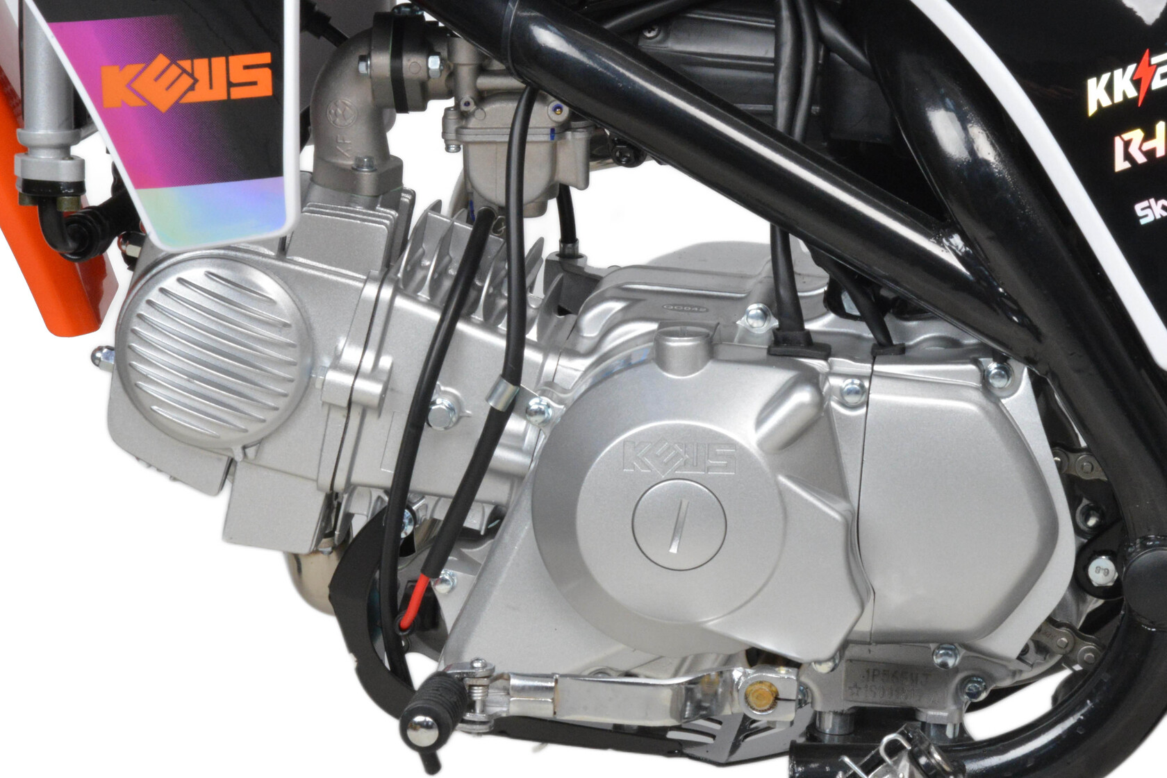 Питбайк Kews K61 140 E 19/16 идеален для поездок по грунтовым дорогам и бездорожью. Хорошо чувствует себя на мягком и среднем грунте, разгоняется до 110 км/ч. Оснащён спортивными траверсами, весит всего 90 кг.Питбайк прост в управлении и не требует специального ухода, подойдёт как новичкам, так и любителям мотокросса.У питбайка отличный узнаваемый дизайн. Конструкция подчёркивает неуступчивый спортивный характер, который не остановится ни перед одним препятствием.Комбинированный прочный пластик не ломается при сгибании.Передняя подвеска — телескопическая вилка перевёрнутого типа (регулировка по давлению), которая отлично подходит для преодоления ям, и других неровностей плохих дорог или их отсутствия. Задняя подвеска маятниковая, моноамортизатор с прогрессией. А так же оснащён складными рычагами сцепления и переднего тормоза.Питбайк оснащён карбюратором NIBBIPE22 и одноцилиндровым четырёхтактным двигателем с воздушно-масляным охлаждением. Надёжный мотор 1P56FMJ мощностью 11 л. с. и объемом 140 см3