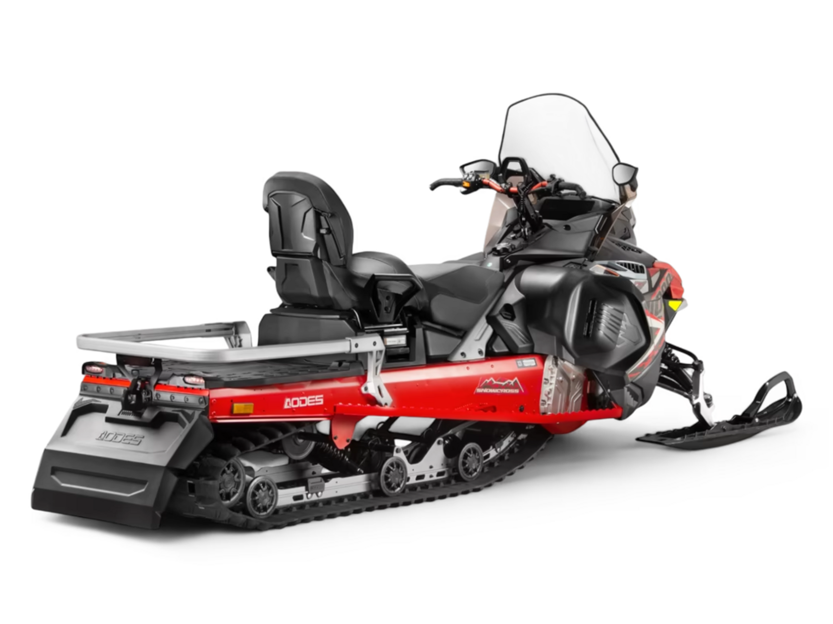 AODES SNOWCROSS — это утилитарно-туристические снегоходы на рычажной подвеске с богатым оснащениям для комфортных путешествий и работы по хозяйству!V-образный двигатель 1000 см³ мощностью 87 л.с., гусеница 508 мм, передняя подвеска А-образные рычаги, трансмиссия с пониженной передачей, LCD приборная панель 10,25 дюйма.Эта модель точно придется по душе любителям комфортных снегоходных поездок на рыбалку, охоту или просто в туристических целях, за счет использования в конструкции снегохода проверенных временем эргономичных решений, топовых технологий именитых производителей и брендов.Снегоход сочетает в себе уже так знакомый многим райдерам комфорт, мощность и высокую проходимость в глубоком снегу и на укатанных трассах.Широкая гусеница, мощный двигатель, эффективная подвеска — все то, что нужно для передвижения на снегоходе с пассажиром или в утилитарно-хозяйственных целях, например, для буксировки саней-волокуш.Все необходимое для комфортного передвижения по бездорожью уже с заводаЭлектроусилитель руля (EPS), зеркала заднего вида, лебедка с тяговым усилием 1500 кг, усиленный передний и задний бампер, расширители колесных арок и двухместное сиденье. Кроме того, вас порадует современная светодиодная оптика и максимально удобные органы управления от стояночного тормоза до розетки в 12В и USB разъема.Основные агрегаты проверены временем и тысячами райдеров по всему мируИспользуя проверенные технологии для сборки основных агрегатов — двигателя и вариатора, мы твердо уверены в их надежности. Даже при самом активном использовании техники, они не подведут.*При соблюдении правил эксплуатации и своевременного обслуживания.24 месяца — срок гарантийного обслуживания для всех квадроцикловПоддержка от производителя — это залог уверенной эксплуатации техники. Будьте уверены, ограниченное гарантийное обслуживание квадроциклов обеспечивается на протяжении полных 2-х лет. Подробности уточняйте у вашего дилера.