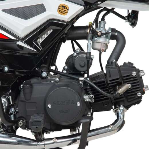 Мопед поставляется с 48 кубовым одноцилиндровым по документам, 110 по факту четырехтактным двигателем с воздушным охлаждением (1P39FMB). Установлен карбюратор Keima PZ19.