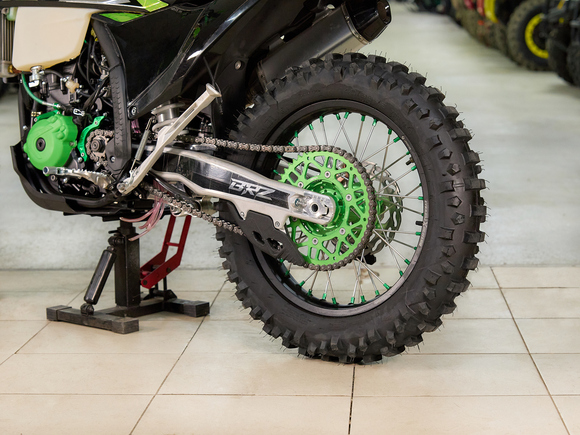Размер и тип колес – 21х18 обода алюминиевые. Размер передней покрышки 80/100-21. Размер задней покрышки 120/100-18