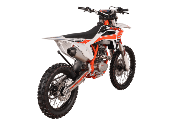 KAYO K6-A 300 MX – новинка в линейке эндуро мотоциклов. Это первый полноразмерный эндуро семейства KAYO с воздушным охлаждением. Создан для тех, кто ищет неприхотливый и выносливый мотоцикл для экстремальных условий офф-роуда и горных трасс.Модель оснащена одноцилиндровым 4-тактным двигателем 175FMN CB300RL с 4 клапанами и балансирным валом объёмом 271 см³ и мощностью 27 л.с. Запуск осуществляется с помощью электростартера. Карбюратор NIBBI PWK34 отвечает за стабильную работу даже при высоких нагрузках. Чтобы контролировать время работы техники, приборная панель оснащена счётчиком моточасов. Механическая коробка передач имеет 5 ступеней.Ходовая часть включает переднюю подвеску KAYO Racing Performance (KRP), произведённую компанией KKE специально для KAYO, с ходом 940 мм и задний моноамортизатор с ходом 480 мм. Оба компонента оснащены полным набором регулировок. Это позволяет настроить мотоцикл под конкретные условия и стиль вождения, чтобы езда по неровностям была более плавной и устойчивой.Классические спицованные колёса с алюминиевыми дисками и шины YUANXING диаметром 18 и 21 дюйм создают крепкий зацеп с поверхностью. Передние и задние дисковые тормоза гарантируют безопасность и контроль над скоростью. Пластиковая защита тормозных дисков повышает долговечность системы.Благодаря передней LED-фаре управление становится возможным даже в тёмное время суток.KAYO K6-A 300 MX – выбор тех, кому нужен производительный, лёгкий в обслуживании и надёжный мотоцикл для активного отдыха и спорта. Подойдёт и новичкам, и опытным гонщикам.Комплектация и внешний вид мотоцикла могут отличаться в зависимости от поставки. Изображение на сайте не гарантирует наличие тех или иных опций. Уточняйте информацию при оформлении заказа.