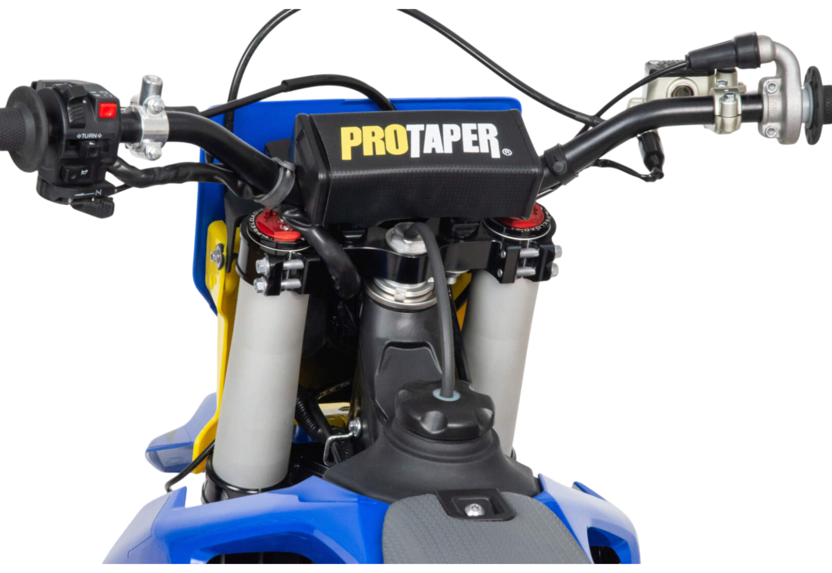 Габариты (2100×800×1250 мм) и база по осям 1460 мм обеспечивают отличный баланс между устойчивостью и поворачиваемостью. Высота по седлу — 950 мм, а высота до руля увеличена до 1230 мм, что даёт более вертикальную и агрессивную посадку, характерную для профессиональных кроссовых моделей.
